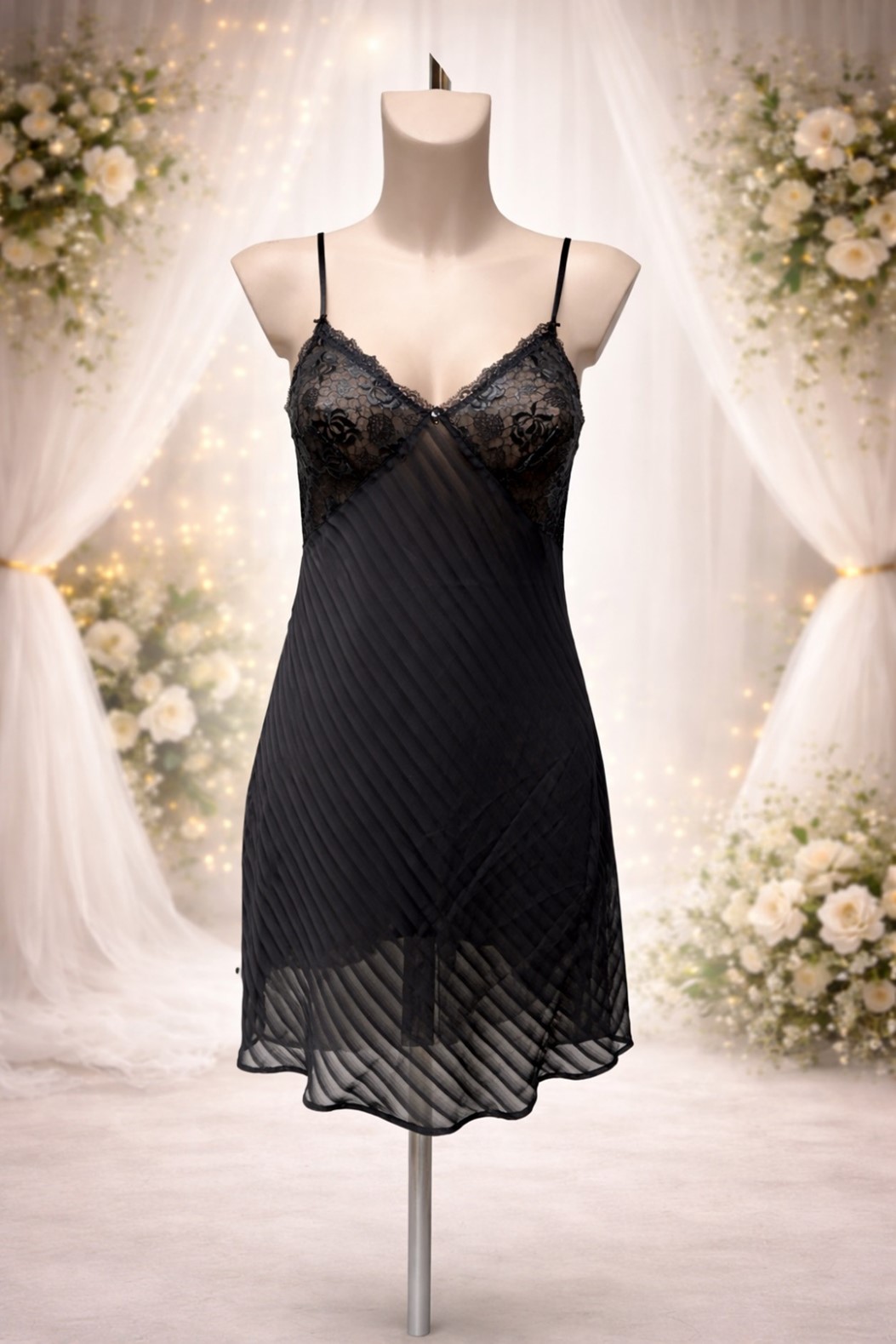 Nuisette de marque LC en noir Ajourage Pétales
